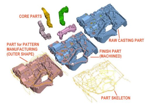 In this method, the complex model is divided into small portions. Generally divided into small portions similar to mold or pattern split including cores. A part-control-assembly brings the parametric relationship among parts. Actual manufacturing of casting part is simulated, drafts and rounds are given all parts including cores and pattern parts, any serious change in thickness due to draft requirement, can be detected early.